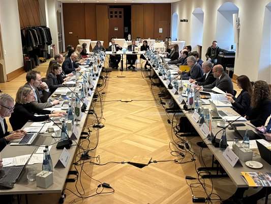 Am 24. Oktober 2025 kamen die Mitglieder des Erweiterten Ständigen Ausschusses der Internationalen Bodensee-Konferenz (IBK) zu ihrer letzten Sitzung im Vorsitzjahr 2025 im Alten Schloss in Stuttgart zusammen. Unter der Leitung von Holger Stegmaier, Abteilungsleiter für Europapolitik im Staatsministerium Baden-Württemberg, wurden zentrale strategische Themen für die Zukunft der Vierländerregion Bodensee beraten.